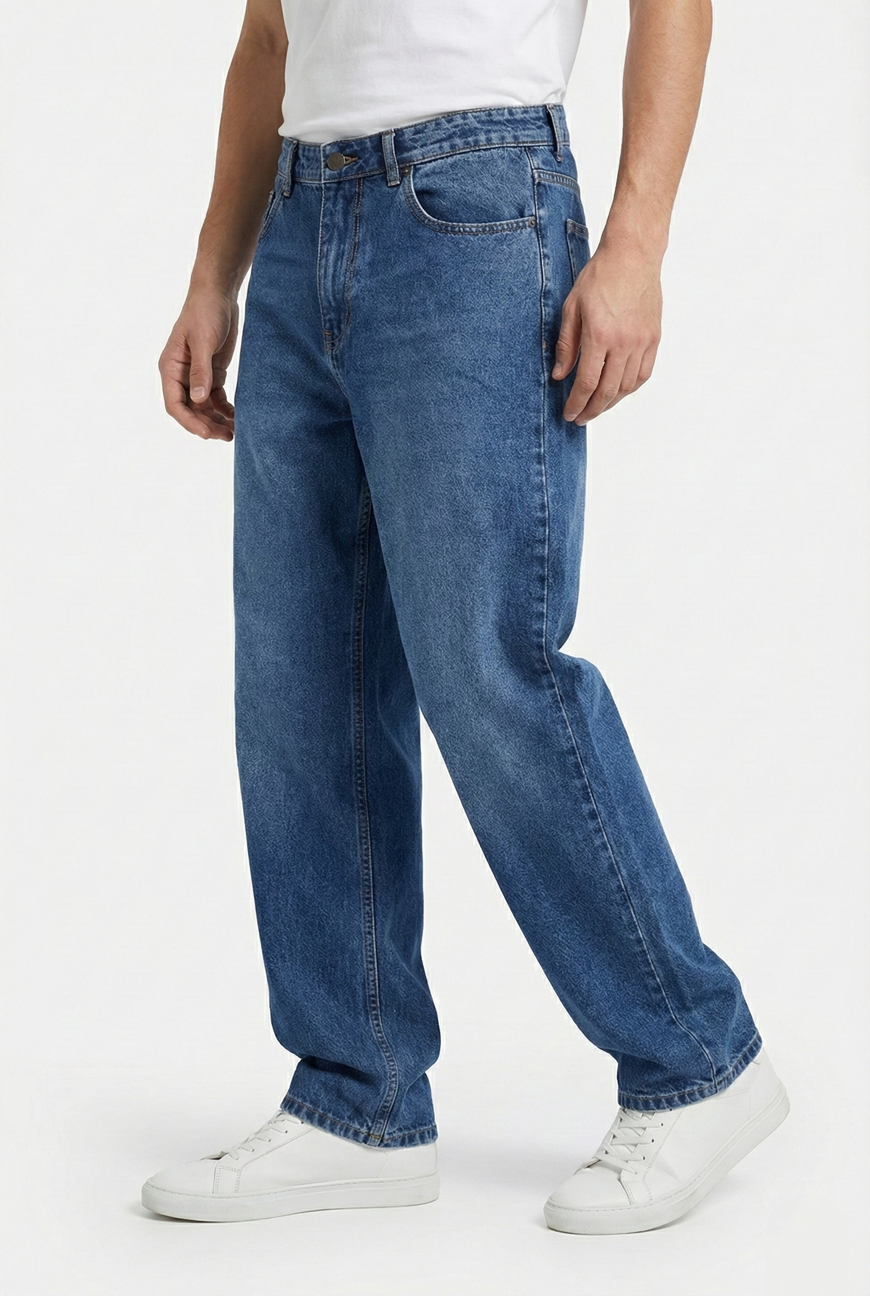 شلوار بگ مردانه جین آبی سنگ شور با کیفیت بالا MB336